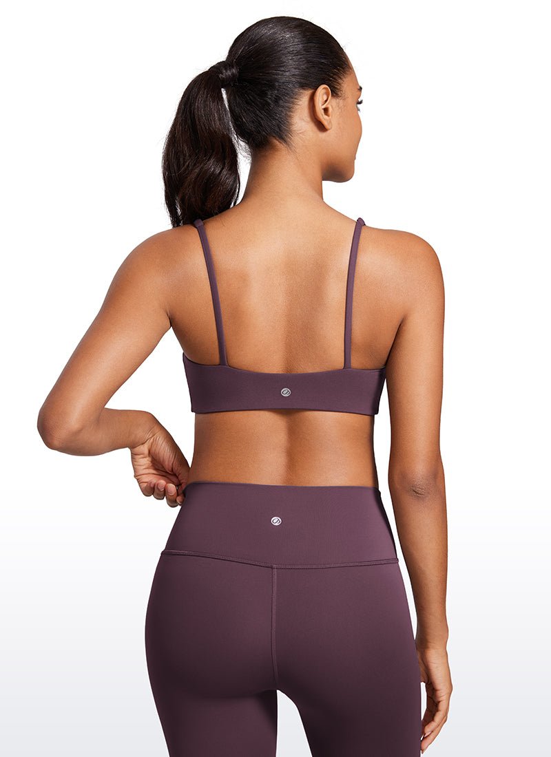 Butterluxe collection is engineered for extremely soft comfort. Low support spaghetti thin straps sports bra with removable pads for easy adjustment. Sexy low cut square neckline. camisole style. which is stylish and charming.